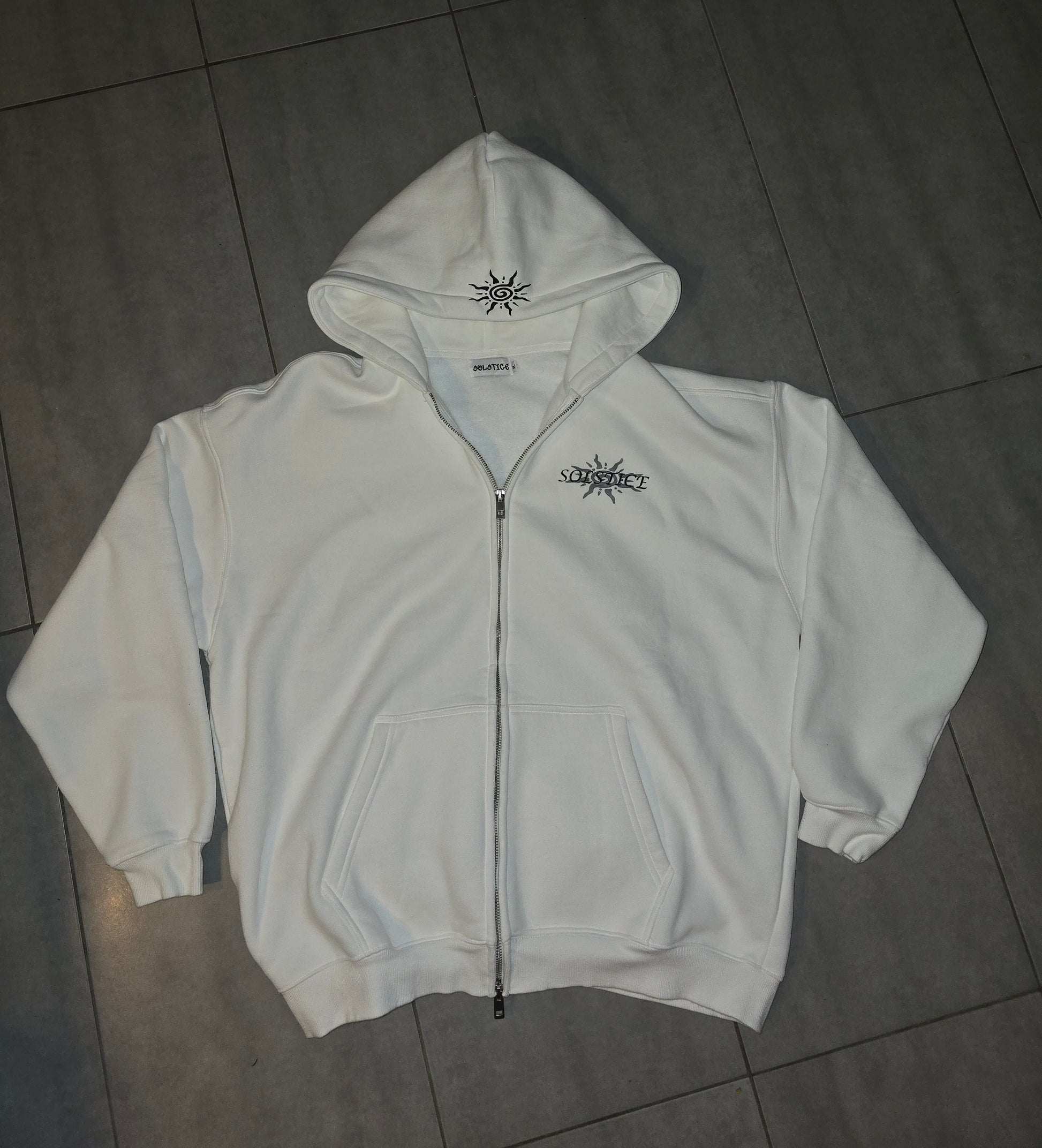 White zip-up hoodie